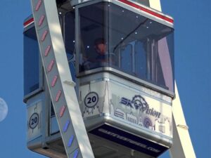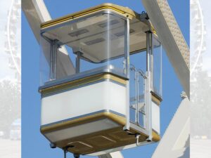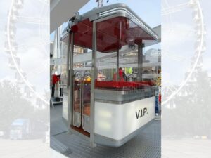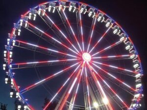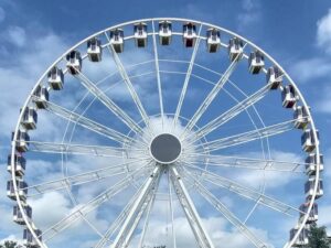 Unser fabrikneues Riesenrad ist 48m hoch. Es handelt sich um eine, im Jahr 2023 extra für uns hergestellte Anlage, des Marktführers Mondial aus den Niederlanden. Mit seinen 36 geräumigen verglasten Gondeln bietet es 216 Fahrgästen gleichzeitig die Möglichkeit einer Aussichtsfahrt der besonderen Art.